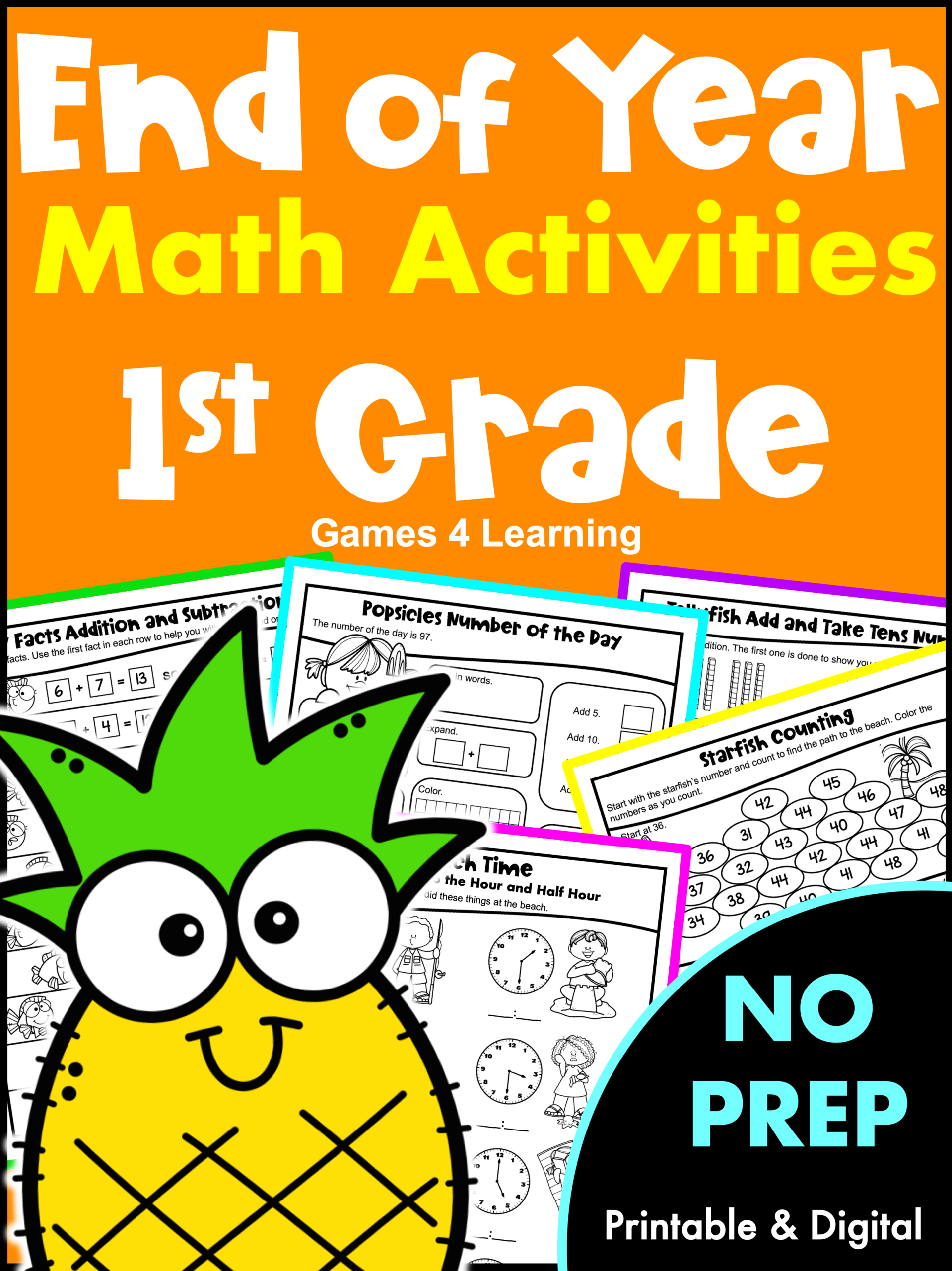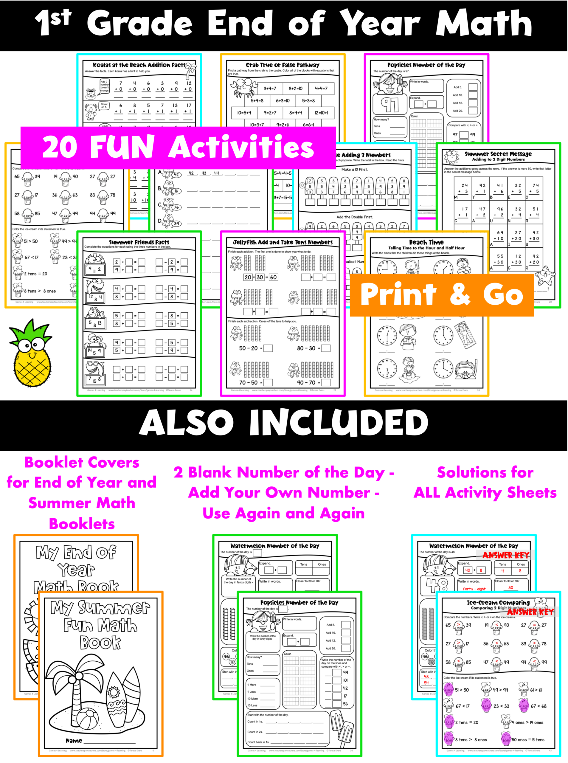 Learn More at: https://www.teacherspayteachers.com/Product/1st-Grade-End-of-Year-Math-Activities-Worksheets-Summer-Packet-Math-Review-8054094