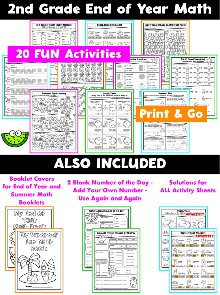 Learn More at: https://www.teacherspayteachers.com/Product/2nd-Grade-End-of-Year-Math-Activities-Worksheets-Summer-Packet-Math-Review-8050044